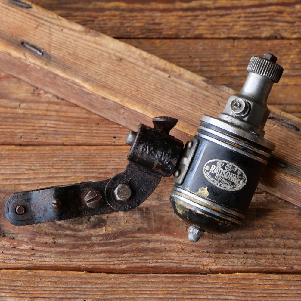 Dynamo "Radsonne Nr. 26", gr. Ausführung, orig. 1930er Jahre, Rechtsläufer, 6V/3W, Höhe ca. 13cm, gebr. mit Patina, Zustand gemäß Bildern
