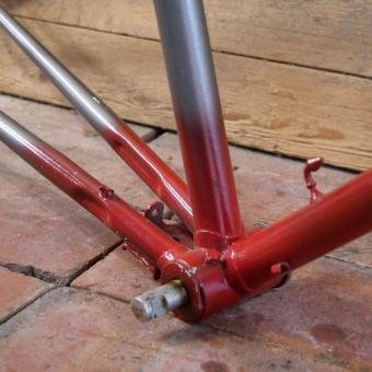 Fahrradrahmen BAUER für Sportrad, Herren, 28 Zoll, Stahl, 60er J., Neulackierung sibergrau/rot, Rahmenhöhe 58 cm, Einbaumaß 118 mm, BSA-Keillager, Rahmen-Nr. 2159XXX, gebraucht, Zustand gemäß Fotos
