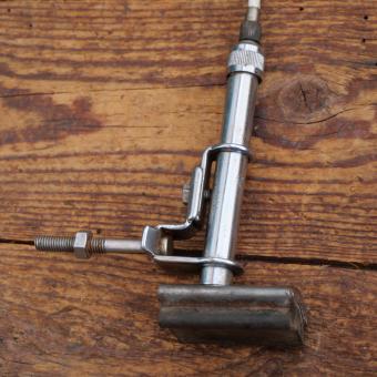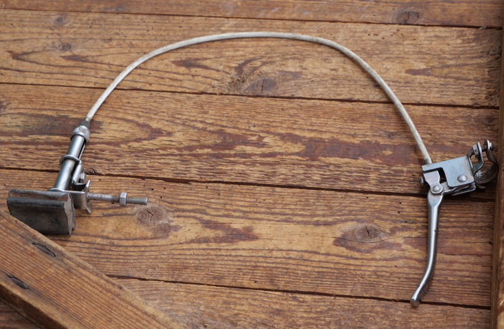 Stempelbremse BÜCHEL mit Seilzug u. Hebel, orig. 50er J., vernickelt, Bremsfuß verzinkt ca. 46 x 35mm,