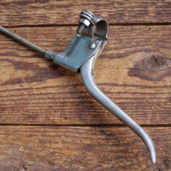Stempelbremse WIPPERMANN mit Seilzug u. Hebel, orig. 50er J., verchromt, Hebel Alu, NOS