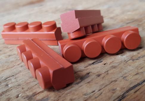 Bremsklötze für Rennradklassiker / Sportrad, MAFAC RACER, COMPETITION, orig. Satz 4 Stück, ziegelrot / salmon, ca. 46 x 11 mm