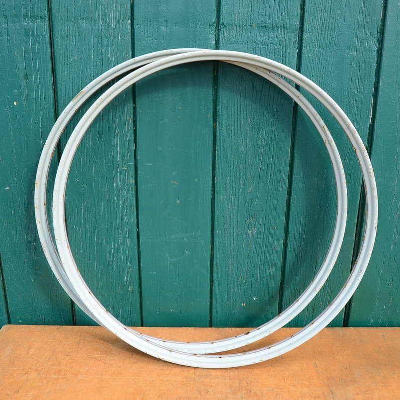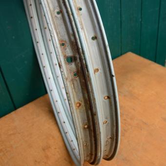 Felgensatz 26x1,75/2,00, Hellblau/türkis, Linierung rot, Patina, 36-loch, Ventilbohrung 8,5 mm, Felgenbreite 39 mm, DDR 50/60er