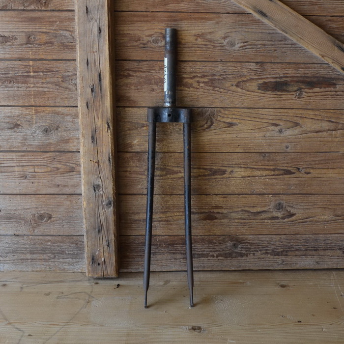 Gabel 28 x 2,00 Motorfahrrad, orig. 30er Jahre unrestauriert, Schaftlänge 168 mm, Weite oben 60 mm, Scheidenlänge 410 mm, Gewindelänge 55 mm, Zustand siehe Bilder