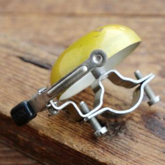Fahrrad Klingel REICH, für Rennrad, orig. 70er/80er Jahre, Alu, gelbgrün-metallic, Durchmesser 50 mm, gebraucht, Zustand siehe Bilder.
