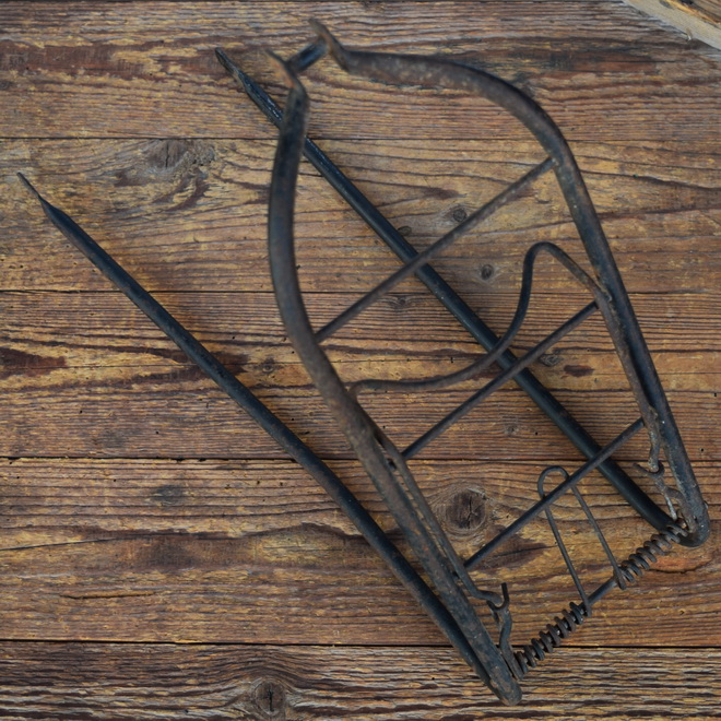 Gepäckträger, orig. 50er Jahre, gebraucht mit Gebrauchsspuren gemäß Bildern, obere Montage mit Klaue am Mittelsteg, untere Montage am Rahmen/Anlötauge, Breite 14cm, Höhe (gemessen in Montagestellung von Unterkante Ladefläche, grade runter bis Befestigungsbohrung unten) c.a. 38,5cm