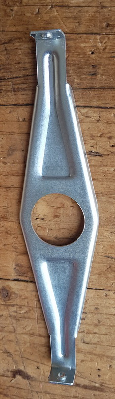 Halterung für Kettenschutz, Montage an der Tretlagerschale, passend für ca. 220 mm Vollkettenschutz, PAGE (deutsche Produktion, 70-90er Jahre Ausführung) , glanzverzinkt, alte Neuware