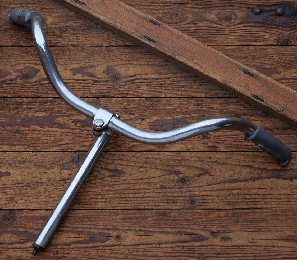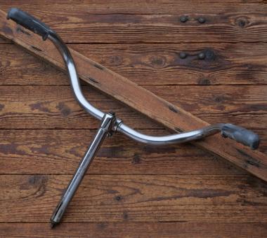 Fahrradlenker mit Vorbau WISSNER, DIAMANT-Kuhhorn-Form, 50er/60er J., verchromt, Durchmesser Lenkrohr und Schaft