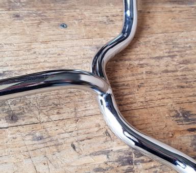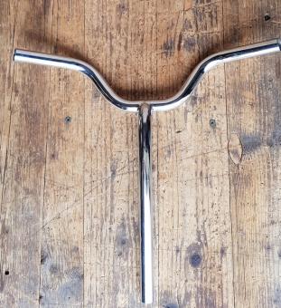 Lenker, Kinderrad 50-70er J. ,NOS, verchromt, 22 mm, Breite 43,5 cm, Gesamthöhe incl. Schaft. . ca. 43 cm. Passend für Kinderräder/Roller mit Außenklemmung zur Lenkerbefestigung, keine Innenklemme!