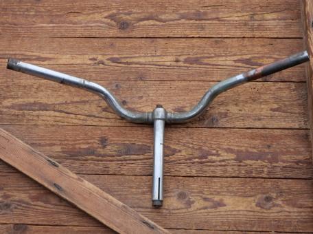 Mopedlenker, original 50er Jahre, verchromt, Durchmesser Lenkrohr u. Schaft 22,2 mm, Breite ca. 570 mm, Schaftlänge ca. 150 mm, gebraucht mit Patina, Zustand siehe Bilder.