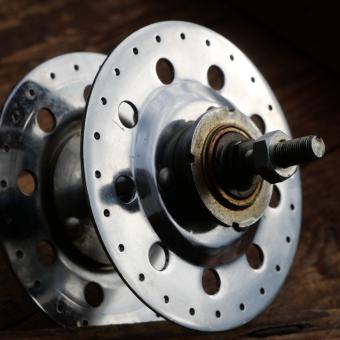 Nabe Vorderrad, Perrin-Lardy Hochflanschnabe, für Radball, verchromt, original 30er-60er Jahre,