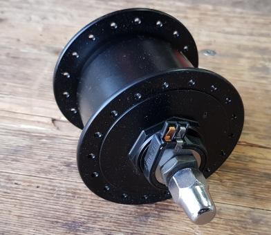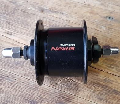Nabendynamo "Shimano Nexus", solider Stahl- Nabenkörper, 36Loch, hochwertige Ausf., incl. Chrom Hutmuttern. Klassich schwarze Ausführung (Beschriftung entfernbar, wenn störend).