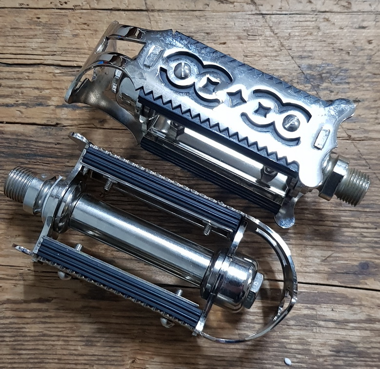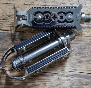 Pedale "FLÜGELPEDAL", vernickelt, Gummi schwarz, Flügelpedale waren die Standardausrüstung fast aller