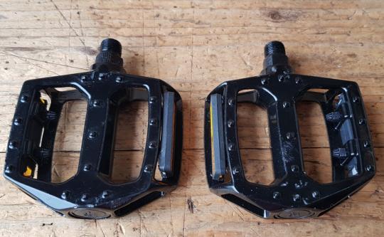 Pedale MTB / BMX, Aluminium, schwarz, Standard Gewinde 9/16 Zoll, sehr stabil (Korpus aus einem Guss) , rutschfest und trittsicher, aus Lagerbestand. Ideal für klassische MTB's
