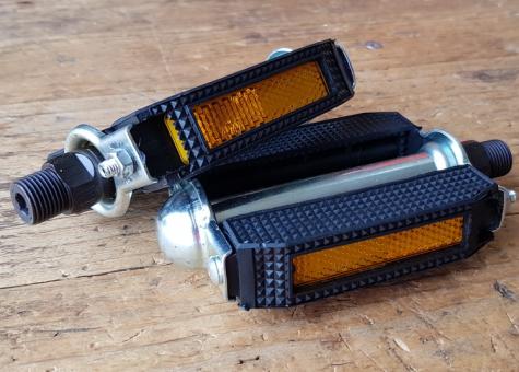 Pedale f. Tourenrad, Klapprad etc., Standard Gewinde 9/16 Zoll, zerlegbar verschraubt, m. Reflektoren, günstig aus Lagerbestand
