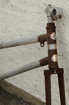 Fahrradrahmen "GR Gnome Rhome" Frankreich,rarer Hilfsmotor-Rahmen, orig. 40/50er J., incl. Gabel, ohne Tretlager Rahmennummer: 32618, Aluminium / Stahl, Rahmenhöhe 53 cm, Zustand Steuersatz: ok , Zustand Tretlager : - , Zustand Lack: Original rosti