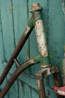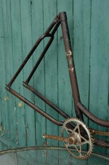 Fahrradrahmen "NSU", Damenausf., schwarz / grün-silber , 28 Zoll, RH=54cm, 50er J., incl. Gabel u. Tretlager Rahmennr.: 646xxx, Linierung: grün-gold, Strahlenkopf, unrestaurierter Originalzustand, Ideal zum Aufbau eines Klassikrades nach eigenen Wüns