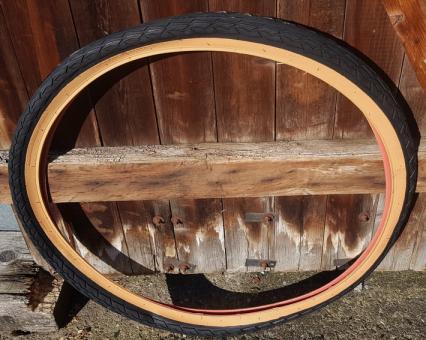 Fahrrad Reifen 28 x 1,75 x 2 (47-622), importierte Neuauflage des Reifenklassikers, schwarz m. hellbrauner Flanke, ideal für Tourenräder der 50-80er Jahre