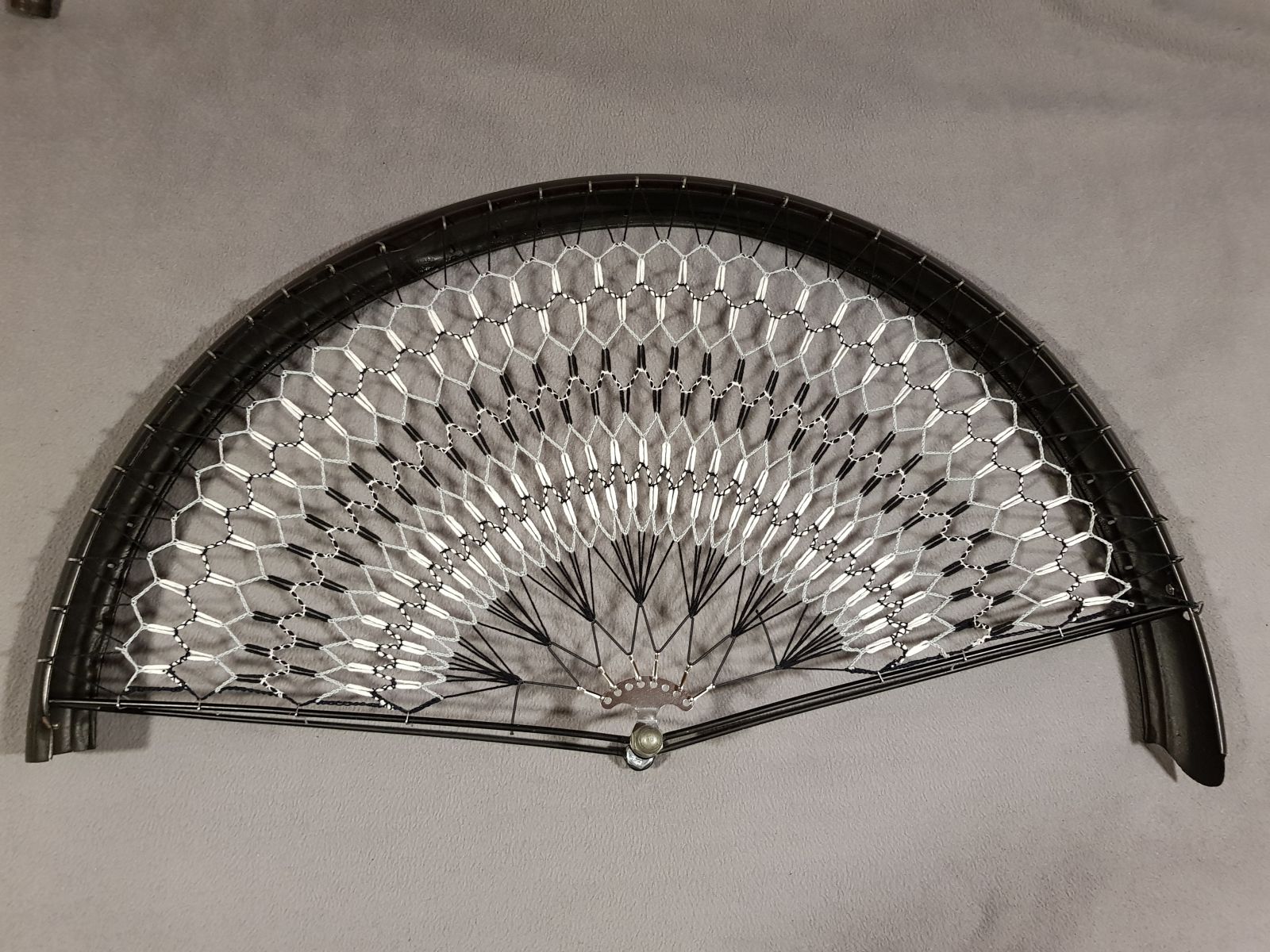 Rocknetz gem. Foto, frühe Quadranten Ausführung, passend für 28" Räder der 00-30er Jahre, grau-schwarz-weiß