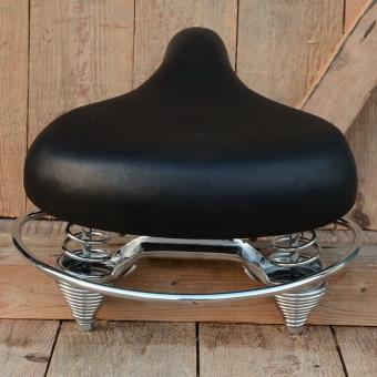 Cruiser Sattel, üppig gefederter, breiter Komfortsattel mit Chromuntergestell und schwarze Kunstlederdecke (Decke ca. 270 x 245 mm) . Die Reeling (Gesamtbreite 270 mm) unterstreicht die Cruiseroptik und schützt die Satteldecke vor Beschädigungen.