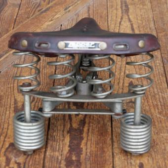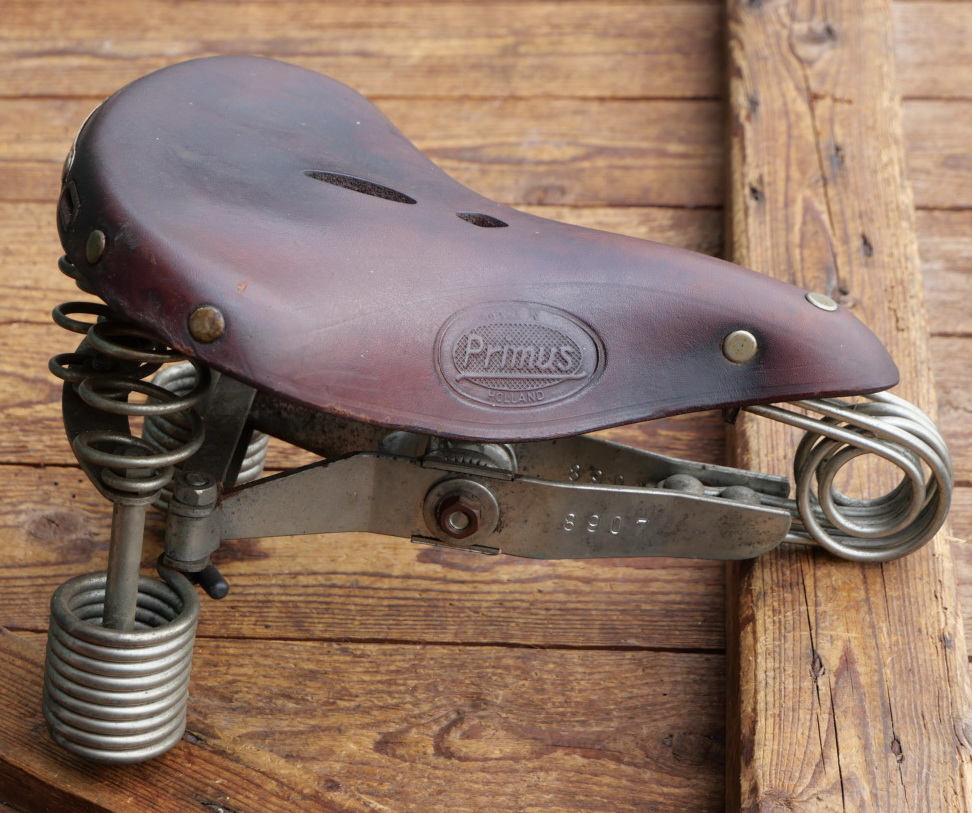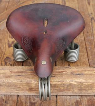 Sattel Herren, LEPPER Primus, Leder rotbraun, Gestell verzinkt, 1980er J., Breite ca. 21 cm, Länge ca. 30 cm, gebraucht