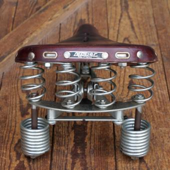 Sattel Herren, LEPPER Primus, Leder rotbraun, Gestell verzinkt, 1980er J., Breite ca. 21 cm, Länge ca. 30 cm, gebraucht