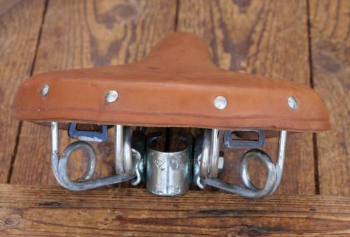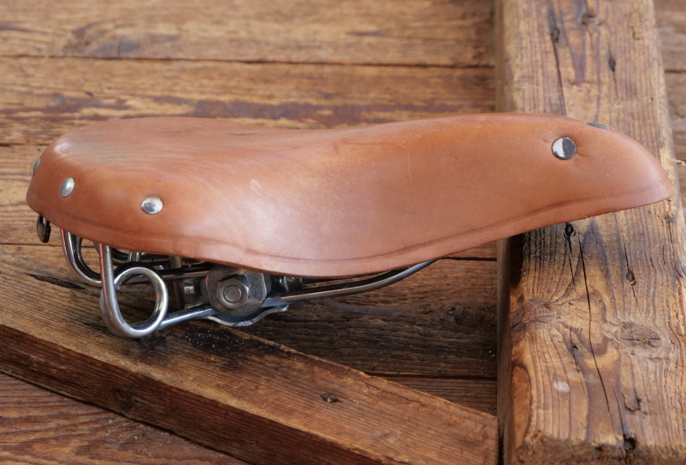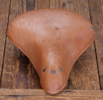 Sattel MÖVE Herren, für Sportrad, Leder hellbraun, Gestell verzinkt, DDR, 1970er/80er J., Breite ca. 20 cm, Länge ca. 26 cm, alte Neuware mit leichten Lagerungsspuren, schöne Patina, Zustand gemäß Bildern