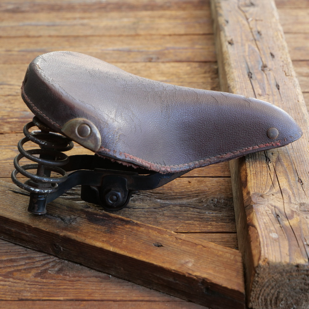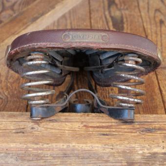 Sattel OLYMPIA, Herren, Kunstleder, rotbraun, Gestell verchromt, original 1930er/40er Jahre, WW2,