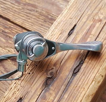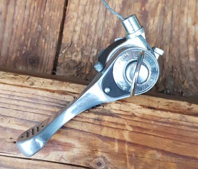 SACHS - HURET Index Daumenschalter , Alu poliert, Schelle chrom, MTB, Tourer etc. 5 - 7 -fach, orig. 80er Jahre, NOS, incl. Zug , RAR