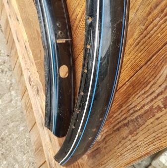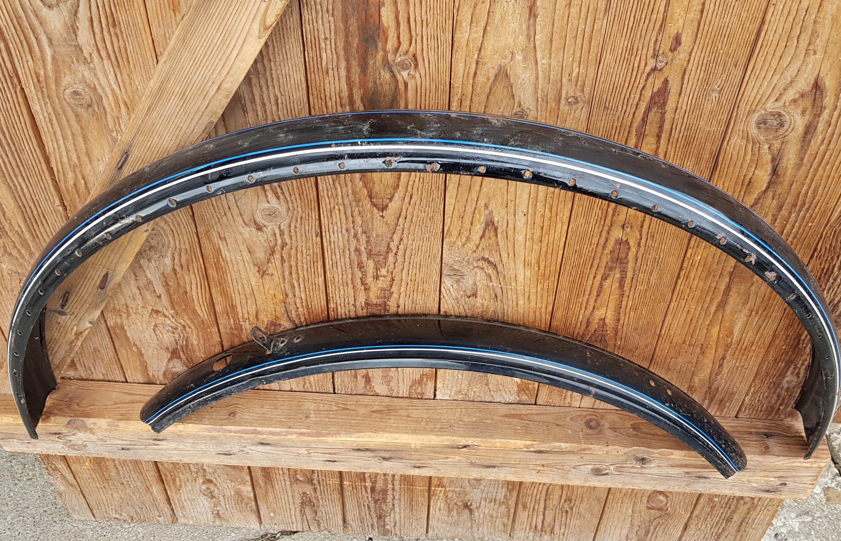Schutzblechsatz 26" Damenausführung mit Netzlöchern, schwarz 26 x 1,75, 58 mm breit, orig. 30-60er Jahre, Dekor 4, blau-weiss außen
