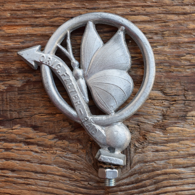 Schutzblechfigur FALTER-RAD, Alu Druckguss, orig. Altbestand 50er Jahre, Zustand siehe Bild