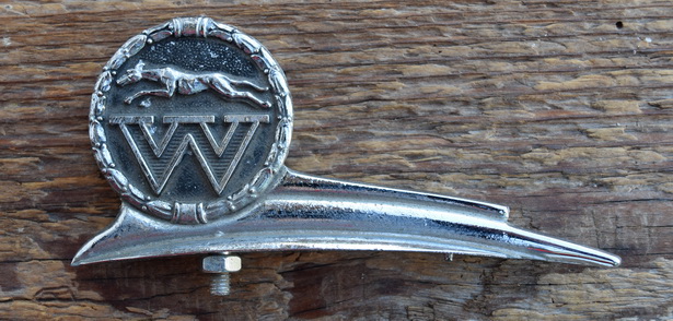 Schutzblechfigur WINDT, Zinkdruckguss verchromt, orig. Altbestand, Zustand siehe Bild