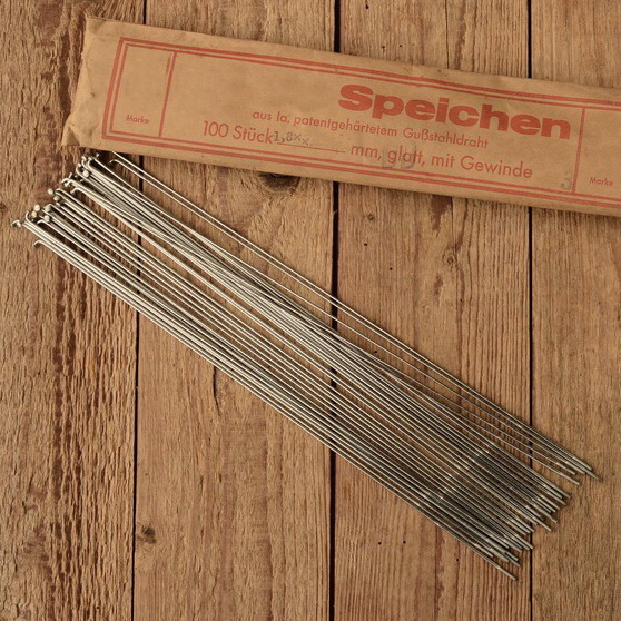 Speichen, DD 1.8 x 1.6 x 1.8 mm, doppelt endverstärkt, vernickelt, orig Altbestand, ideal