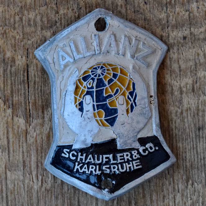 Steuerkopfschild ALLIANZ, 50er Jahre, Originalschild aus Sammlungsbestand, Lochabstand 45 mm