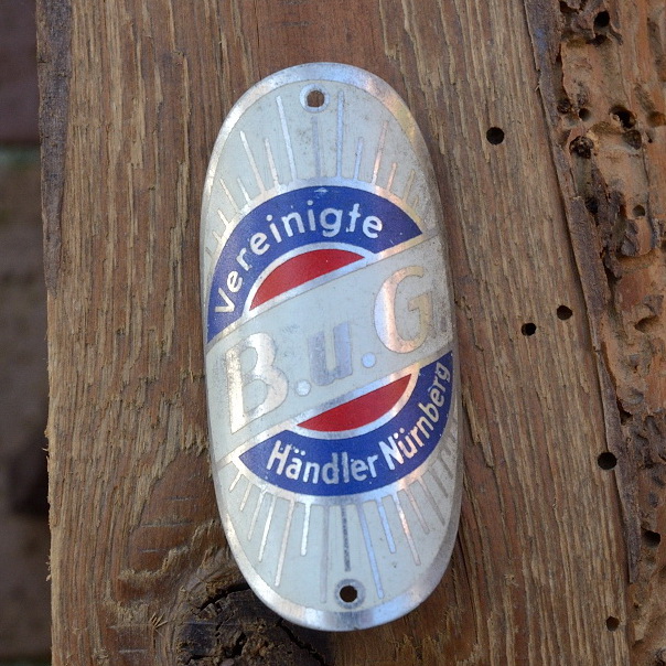 Steuerkopfschild B.U.G., Nürnberg, 30-50er Jahre, Originalschild aus Sammlungsbestand, Lochabstand 59mm