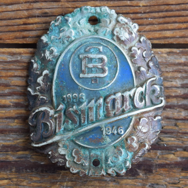 Steuerkopfschild BISMARCK, 50er Jahre, Originalschild aus Sammlungsbestand, Lochabstand 50 mm