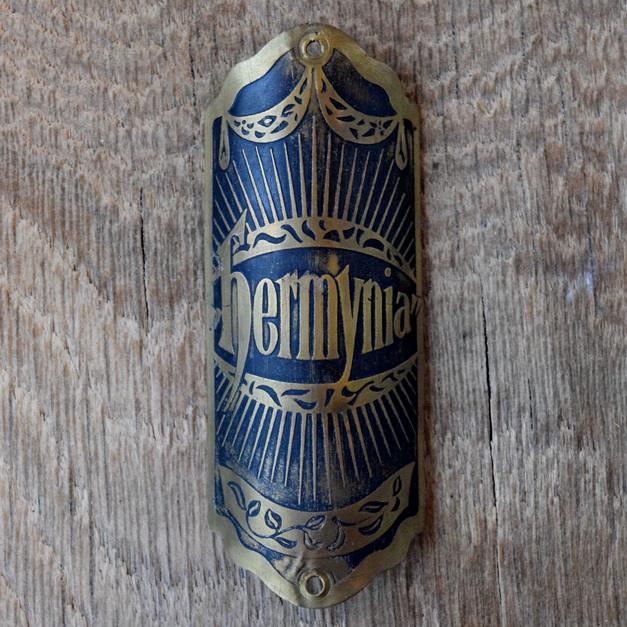 Steuerkopfschild HERMYNIA, 20er Jahre, Originalschild aus Sammlungsbestand, Lochabstand 80 mm