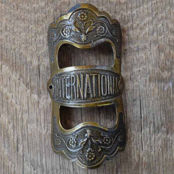 Steuerkopfschild INTERNATIONAL, 20er Jahre, Originalschild aus Sammlungsbestand, Lochabstand 37 mm
