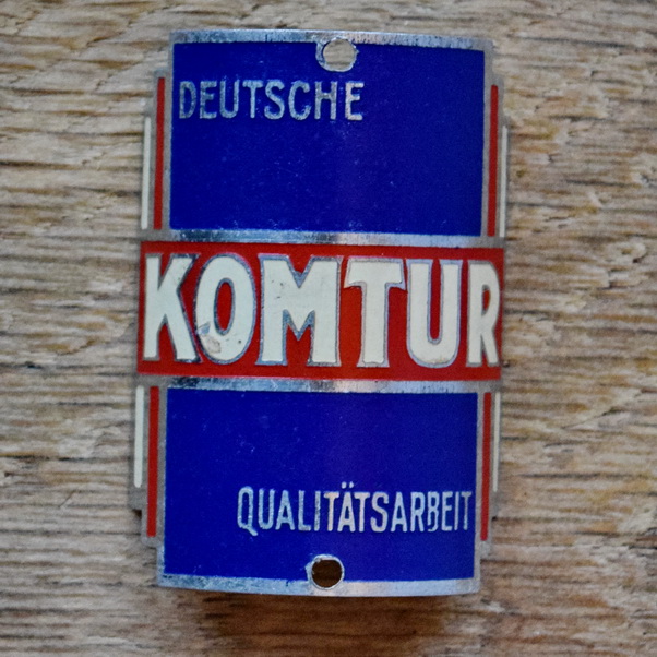 Steuerkopfschild KOMTUR, 50er Jahre, Originalschild aus Sammlungsbestand, Lochabstand 45 mm