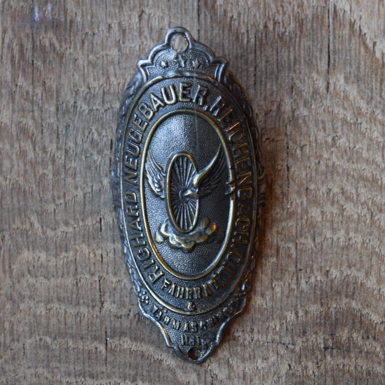 Steuerkopfschild Richard Neugebauer Reichenbach, 10-20er Jahre, Originalschild aus Sammlungsbestand, Lochabstand 69mm