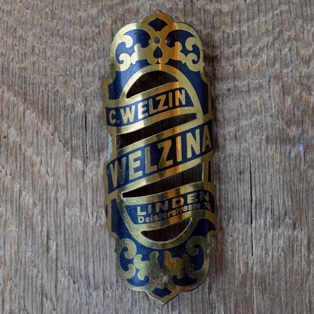 Steuerkopfschild WELZINA, 20er Jahre, Originalschild aus Sammlungsbestand, Lochabstand 73 mm