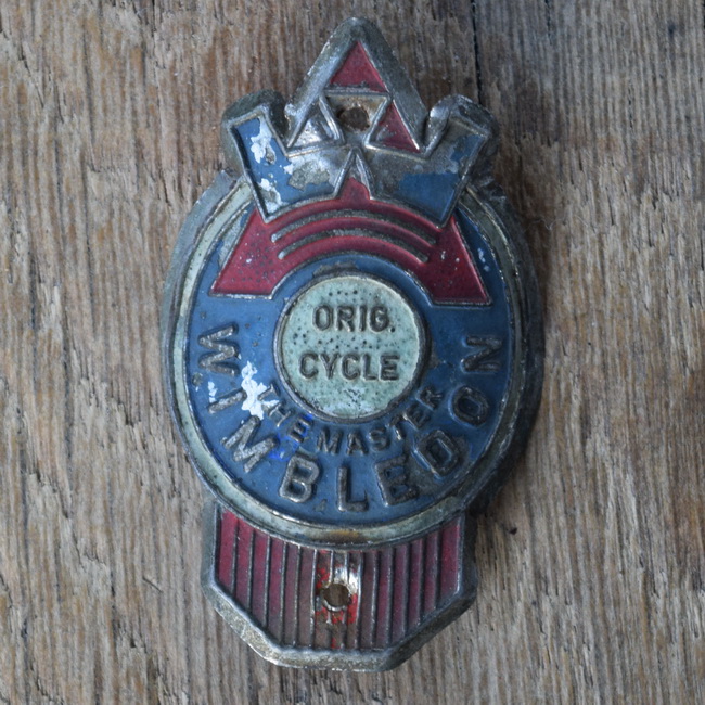 Steuerkopfschild WIMBLEDON, 50er Jahre, Originalschild aus Sammlungsbestand, Lochabstand 44 mm