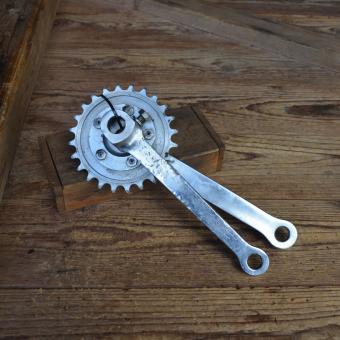 Kurbelgarnitur Keilausf., orig. 50er Jahre, verchromt, gebraucht mit alterstypischen Gebrauchsspuren, siehe Bilder. Kurbellänge: 170 mm. Rares Originalteil für den passenden Klassiker! , Hinweis zum Zustand: Die Tretlager sind unrestauriert, in der Subst
