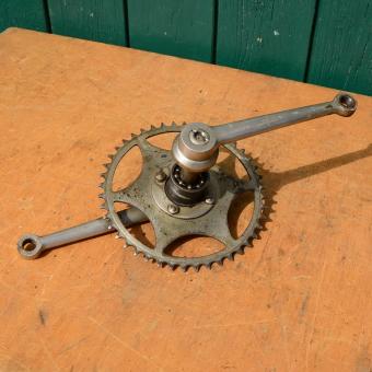 Hinweis zum Zustand: Die Tretlager sind unrestauriert, in der Substanz aber ok. Optik und Zustand der Zähne, siehe Bilder. Die Konen und Lager müssen, soweit überhaupt dabei und je nach Anspruch an den technischen Zustand, ggf. überholt/ergänzt oder ausgetauscht werden. Ersatzteile können wir für viele Typen gegen Berechnung liefern.