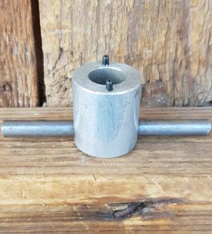 Spezialwerkzeug zum lösen div. Schutzkappen von Tretkurbelverschraubungen, 17 mm Bolzenabstand, Bolzendurchmesser 2 mm, In Kleinserie gefertigtes Werkzeug der 60-80er Jahre, orig, alte Neuware.