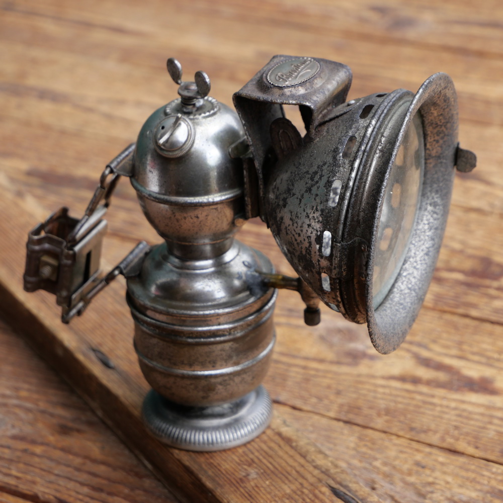 Karbidlaterne BRENTANO, original 10er/20er Jahre, vernickelt, Höhe ca. 16cm, Durchmesser
