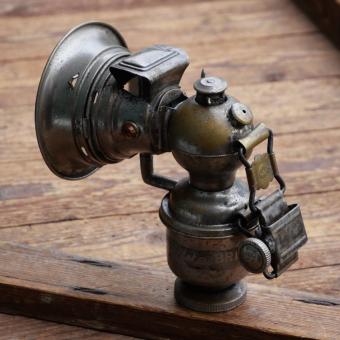 Karbidlaterne "Miller Regalite", 1910er-20er J., vernickelt, Höhe ca. 15cm, Durchmesser ca. 11cm, Englisches Fabrikat, gebr., schöne Patina, Zustand gemäß Bildern