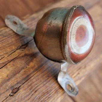 Rückstrahler TIEGERÖJET, dänisch, orig. 20er Jahre, Stahl vernickelt, Domlinsen-Echtglas mit "Auge", gebr.
