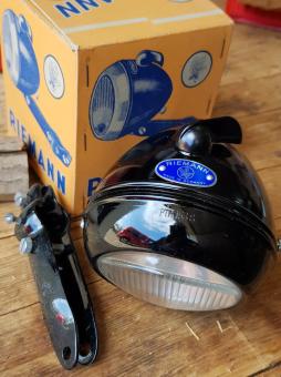 Scheinwerfer "Riemann" PTR 153S, orig. 30-40er Jahre, mit schaltbarer Standlichtfunktion über einzulegende 4,5 V Flachbatterie, rare alte Neuware!