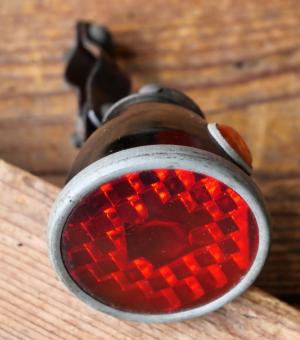 Streben-Rücklicht "HAWE", orig. 30er Jahre, Luxusmodell mit 2 Kontrollaugen und Echtglaseinsatz,