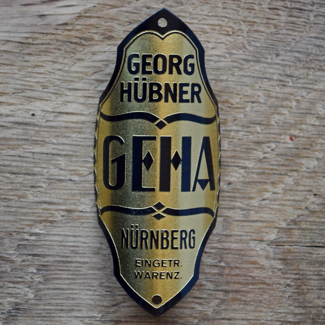 Steuerkopfschild GEHA, 30er Jahre, Originalschild aus Sammlungsbestand, Lochabstand 74 mm